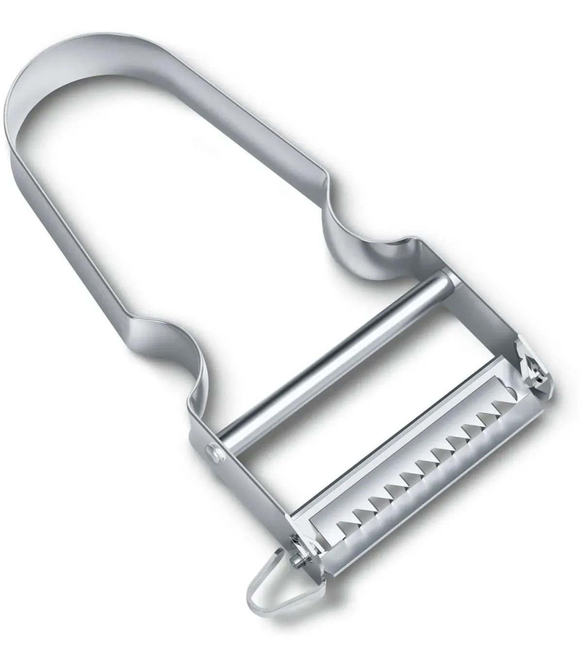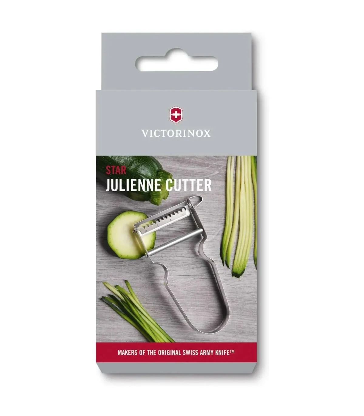 Επαγγελματικός κόφτης julienne για λεπτοκομμένο κόψιμο λαχανικών με ακρίβεια και ευκολία. Ιδανικός για δεξιόχειρες και αριστερόχειρες, με εργονομική λαβή από ανοξείδωτο ατσάλι που εξασφαλίζει σταθερό κράτημα και άνεση στη χρήση.