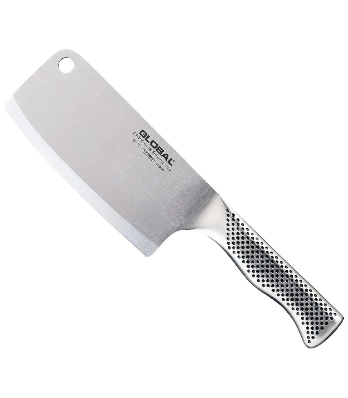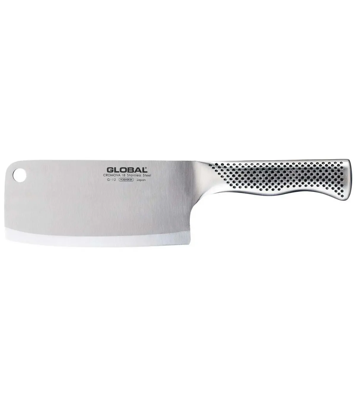 Μπαλτάς Κρέατος Global G-12: Σε αντίθεση με τα εκλεπτυσμένα και ευαίσθητα μαχαίρια της Global που προορίζονται για ακριβείς κοπές τροφίμων, ο μπαλτάς κρέατος της Global είναι σχεδιασμένος με έναν συγκεκριμένο σκοπό: να σπάει τα κόκαλα και να κόβει μεγάλες μερίδες κρέατος. Διαθέτει μεγαλύτερη λεπίδα και παχύτερο ατσάλι από τα τυπικά μαχαίρια της σειράς G, γεγονός που του επιτρέπει να αντέχει στα επαναλαμβανόμενα χτυπήματα που απαιτούνται για την κοπή μέσω των οστών και πάνω σε σκληρές επιφάνειες κοπής.