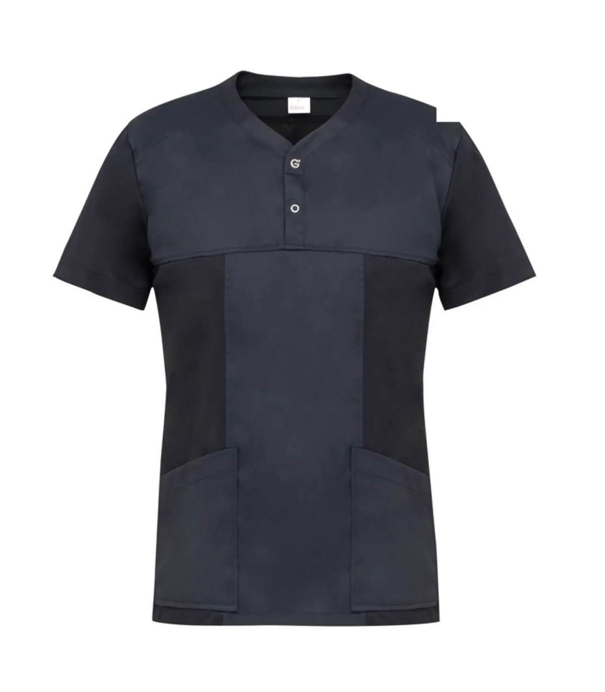 Η μπλούζα εργασίας Connor διαθέτει σημεία Tencel και το υπόλοιπο ένδυμα σε ύφανση με μοτίβο πικέ: ένας τέλειος συνδυασμός μεταξύ δύο από τα υφάσματα με την καλύτερη απόδοση. Η Tencel, μια ίνα βοτανικής προέλευσης που εξασφαλίζει εξαιρετική απόδοση όλη την ημέρα, απορροφά έως και 50% περισσότερη υγρασία από το βαμβάκι, αντιστέκεται στη φθορά διατηρώντας παράλληλα το σχήμα και το χρώμα της ακόμη και με πλύσεις υψηλής θερμοκρασίας και είναι εύκολο στο σιδέρωμα. Ενώ το πλεκτό ύφασμα με μοτίβο πικέ συνδυάζει απαλότητα, υψηλή αναπνοή και γρήγορο στέγνωμα. Εκτός από τα κοντά μανίκια, το μοντέλο χαρακτηρίζεται από ένα κολάρο seraph που κλείνει με δύο κουμπιά, ένα εκ των οποίων με το λογότυπο "G", μια τσέπη στο στήθος, δύο τσέπες στο κάτω μέρος και μια μικρή τσέπη για στυλό. Έχει μια μοντέρνα και σπορ εμφάνιση και στις δύο χρωματικές παραλλαγές, λευκό και μαύρο, ιδανικό για κέντρα ευεξίας και οδοντιατρικά γραφεία.