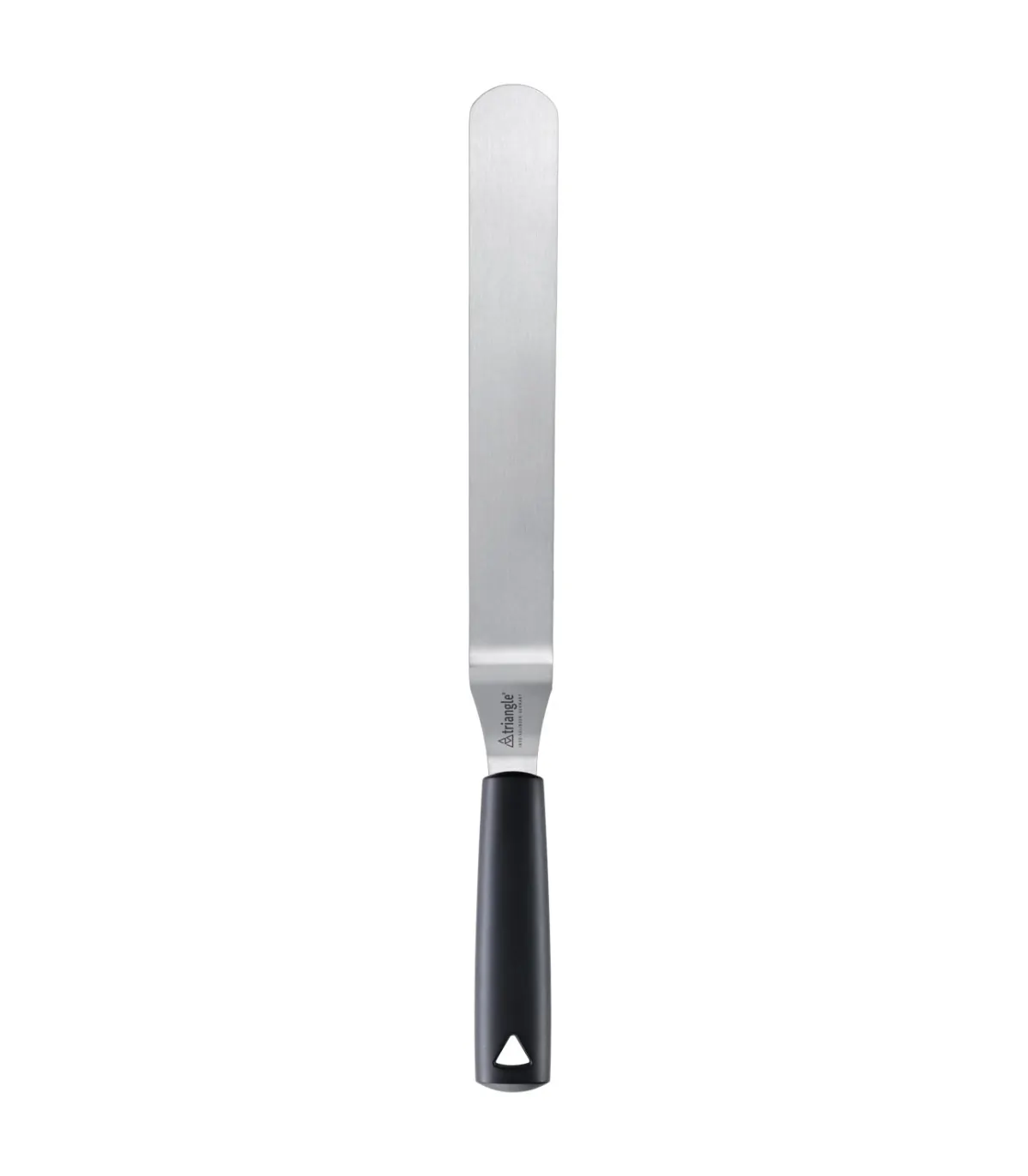 Η σπαστή παλέτα ζαχαροπλαστικής 25 εκ. της triangle διαθέτει άκρως εργονομική λάμα για το service και τη μεταφορά, είναι ιδανική για το άπλωμα της κρέμας στα cake και τις τούρτες ενώ έχει το τέλειο μέγεθος για ποικίλες εργασίες στην κουζίνα. Είναι βαρέως τύπου, πλατιά, με πολύ σκληρό νεύρο στην ένωση με τη λαβή, δεν λυγίζει και είναι πρακτικά αύθραυστη. Μαύρη, εργονομική, πλαστική, συνθετική λαβή από πολυπροπυλένιο με καλαίσθητη τρύπα στην κορυφή της, για εύκολη αποθήκευση.