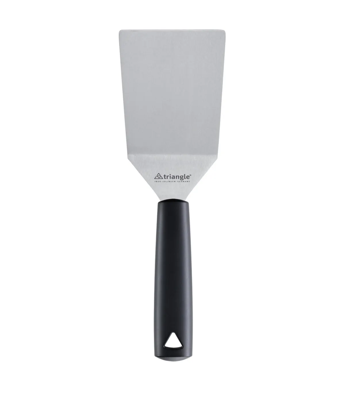 Η φαρδιά, σπαστή σπάτουλα 12 εκ. της triangle έχει το τέλειο μέγεθος για ποικίλες εργασίες στην κουζίνα και το bbq. Είναι ιδανική για το γύρισμα ή τη μεταφορά ζεστού ή κρύου φαγητού. Είναι βαρέως τύπου, πλατιά, με πολύ σκληρό νεύρο στην ένωση με τη λαβή, δε λυγίζει και είναι πρακτικά αύθραυστη. Μαύρη, εργονομική, πλαστική, συνθετική λαβή από πολυπροπυλένιο με καλαίσθητη τρύπα στην κορυφή της, για εύκολη αποθήκευση.