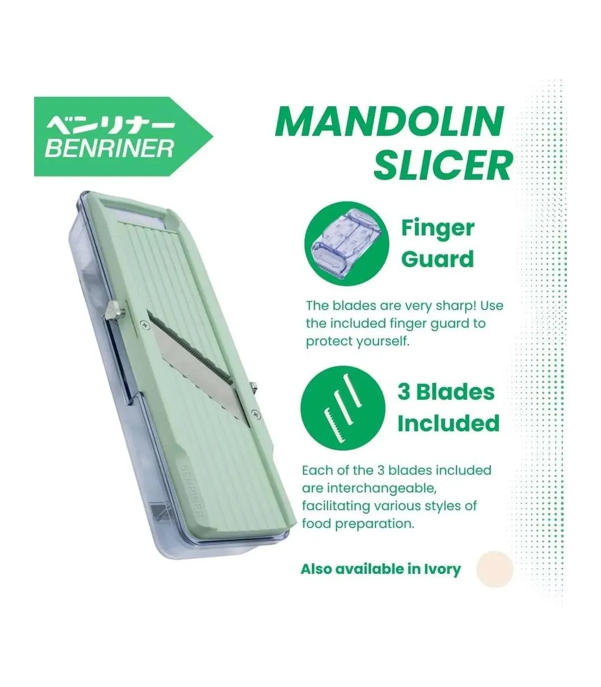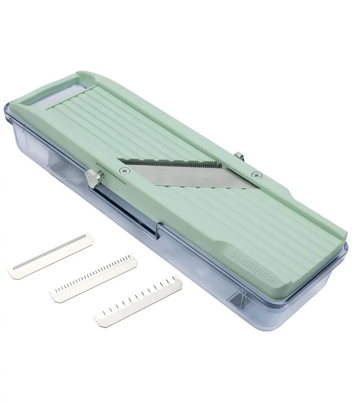 Η ευθεία λεπίδα είναι ιδανική για αγγούρια, καρότα και άλλα λαχανικά, ενώ οι δύο οδοντωτές λεπίδες προσφέρουν δημιουργικές επιλογές για γαρνιτούρες, σαλάτες και stir-fry πιάτα. Από μια απλή σαλάτα μέχρι ένα εκλεπτυσμένο γκουρμέ πιάτο, το Benriner προσφέρει γρήγορη και ακριβή κοπή χωρίς κόπο.