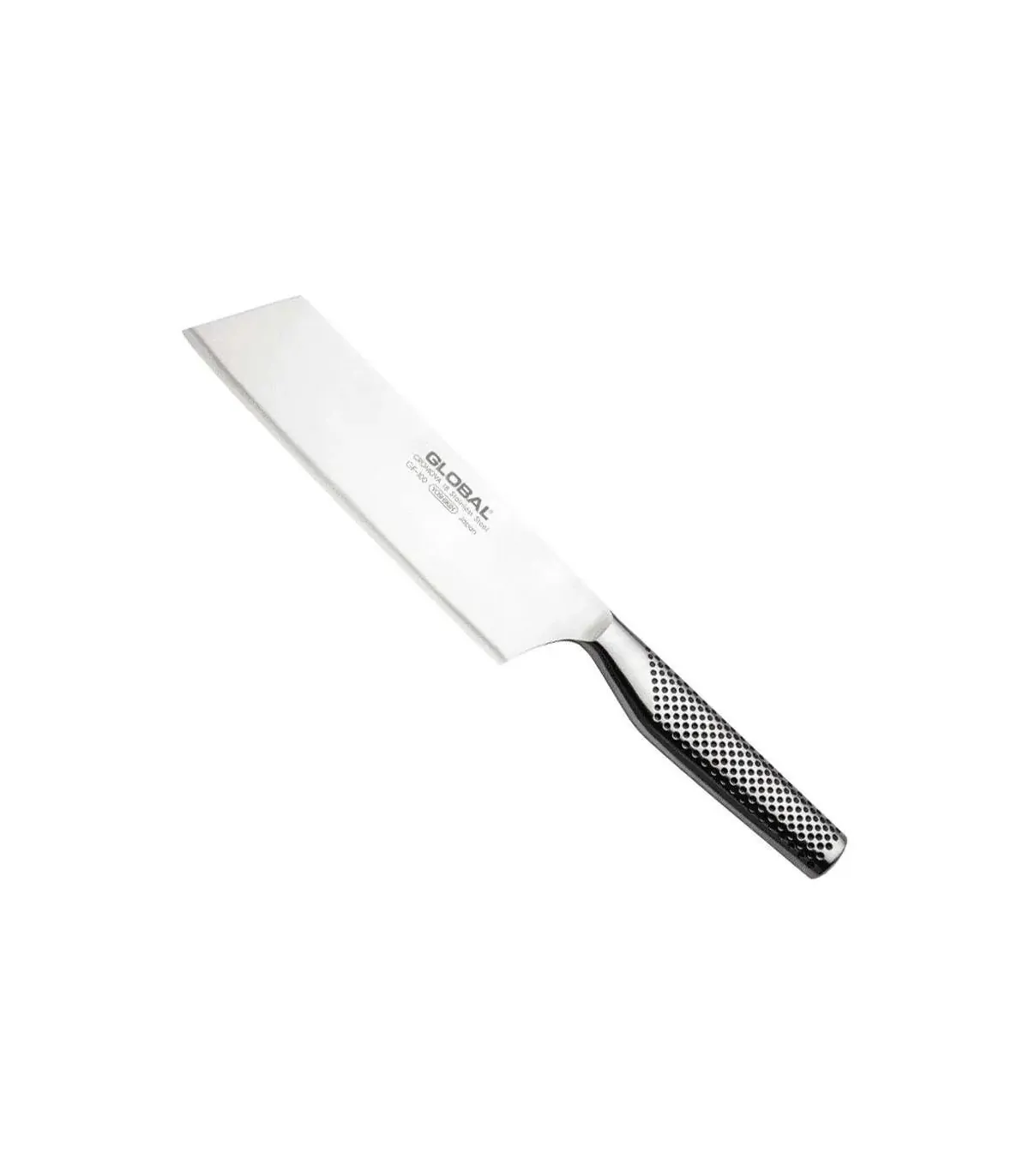 Το μαχαίρι Nakiri είναι το παραδοσιακό ιαπωνικό μαχαίρι για λαχανικά. Η ορθογώνια, ευθυτενής λεπίδα του είναι ειδικά σχεδιασμένη για ψιλοκόψιμο, τεμαχισμό και κοπή λαχανικών με ακρίβεια. Χάρη στη λεπίδα που έρχεται σε πλήρη επαφή με την επιφάνεια κοπής, προσφέρει καθαρές κοπές χωρίς κούνημα, διατηρώντας τη φρεσκάδα και την εμφάνιση των υλικών. Το GF-100 συνδυάζει την παραδοσιακή ιαπωνική φιλοσοφία με την υψηλή τεχνολογία της Global, προσφέροντας αντοχή, ακρίβεια και άνεση στη χρήση.